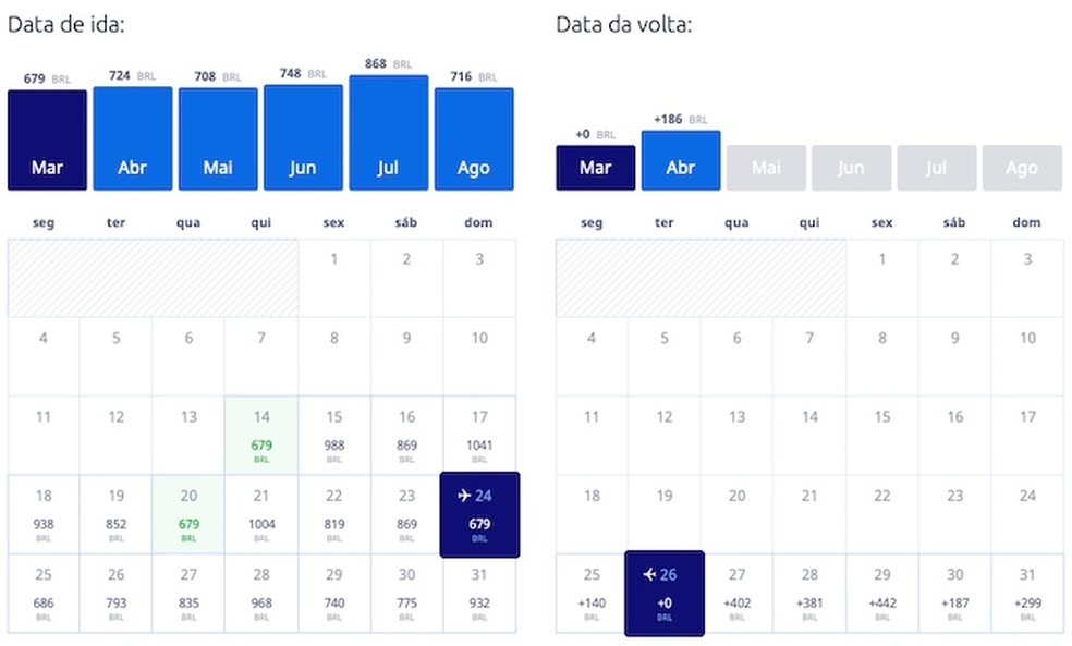 Passo 3. Na próxima etapa, selecione o dia de ida e volta;