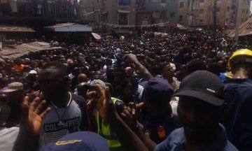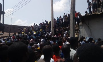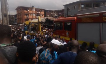 O perfil do governo regional de Lagos no Twitter publicou imagens da multidão que se aglomera no local do desabamento e informa que os esforços de resgate estão em andamento.